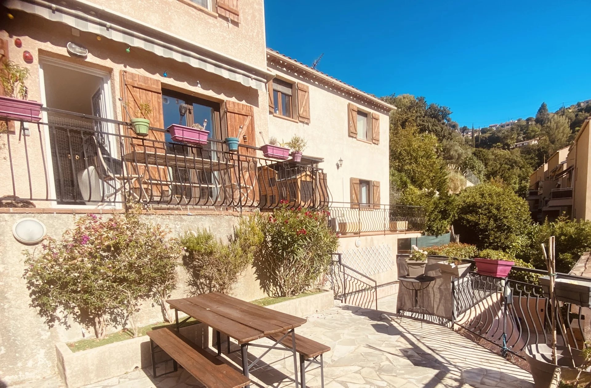 Close to the town center, two-storey house in a quiet, leafy area. Semi-detached villa in excellent condition, comprising on the first floor a spacious living room with fully-equipped open kitchen featuring a wood-burning stove, laundry room and separate toilet.