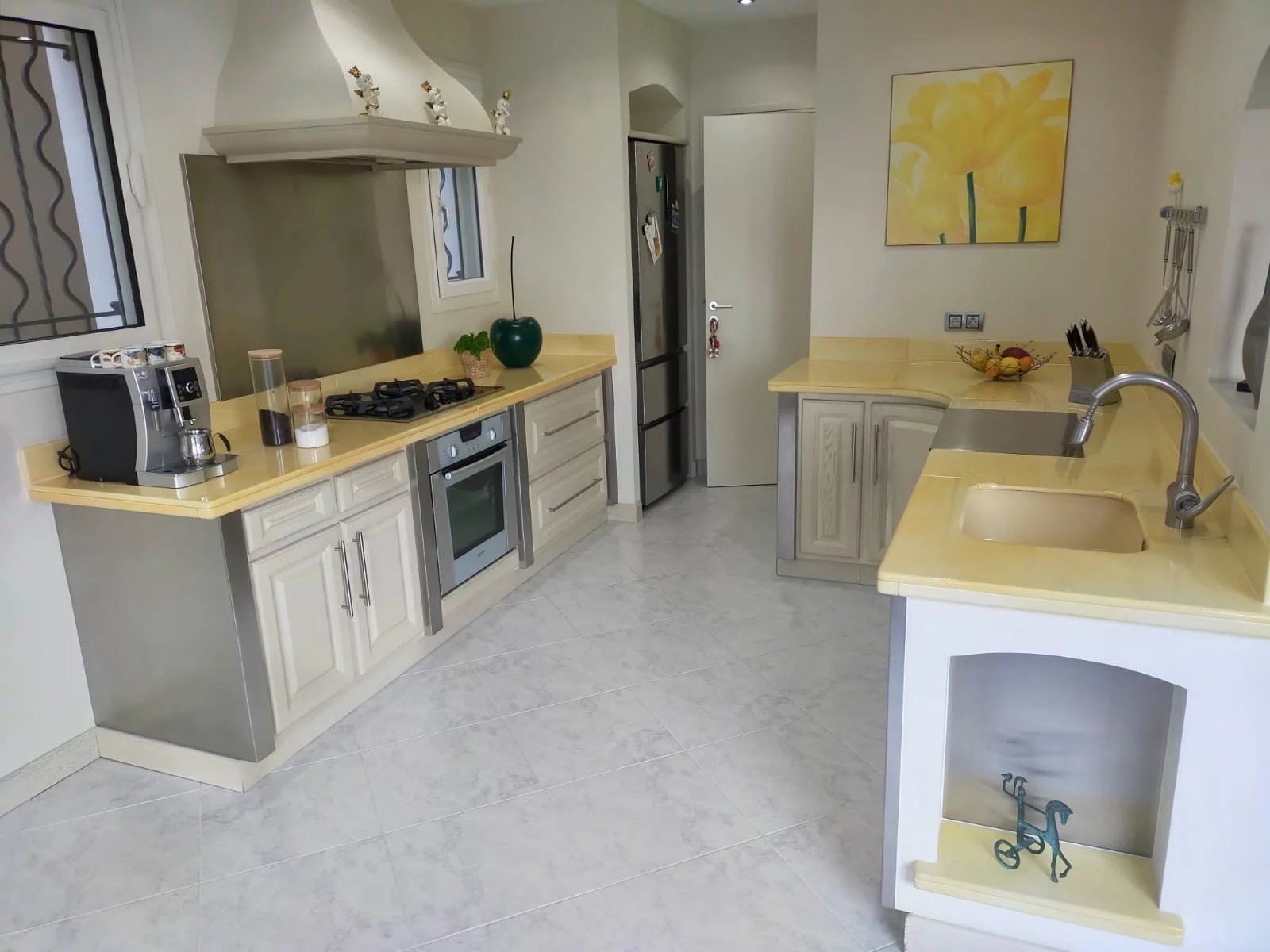 It comprises a vast, bright living room, kitchen opening onto a large 150m² terrace, 5x2m pool with counter-current swimming, guest wc. First floor: 3 spacious bedrooms with fitted closets and dressing room, bathroom, shower room and wc.