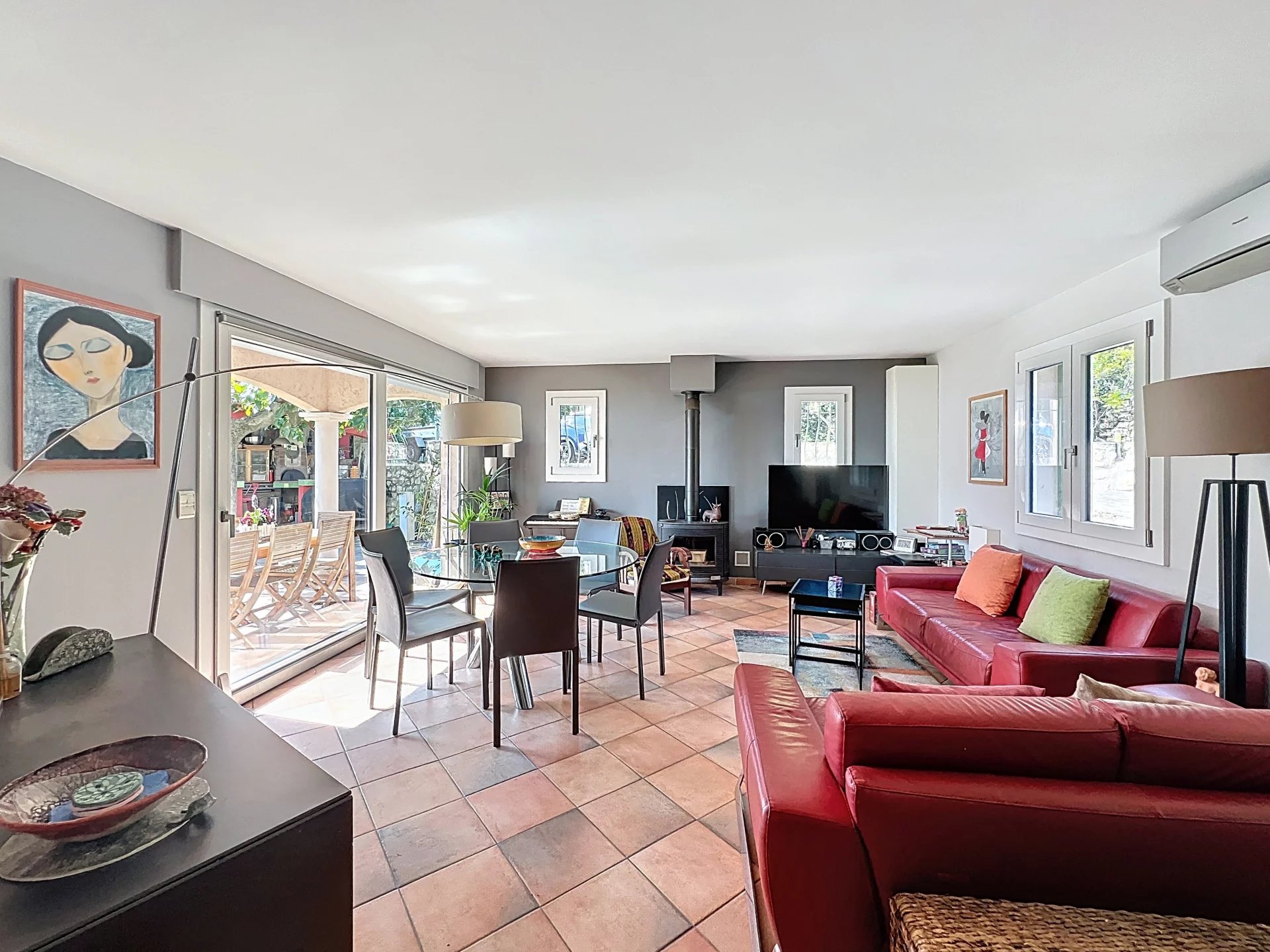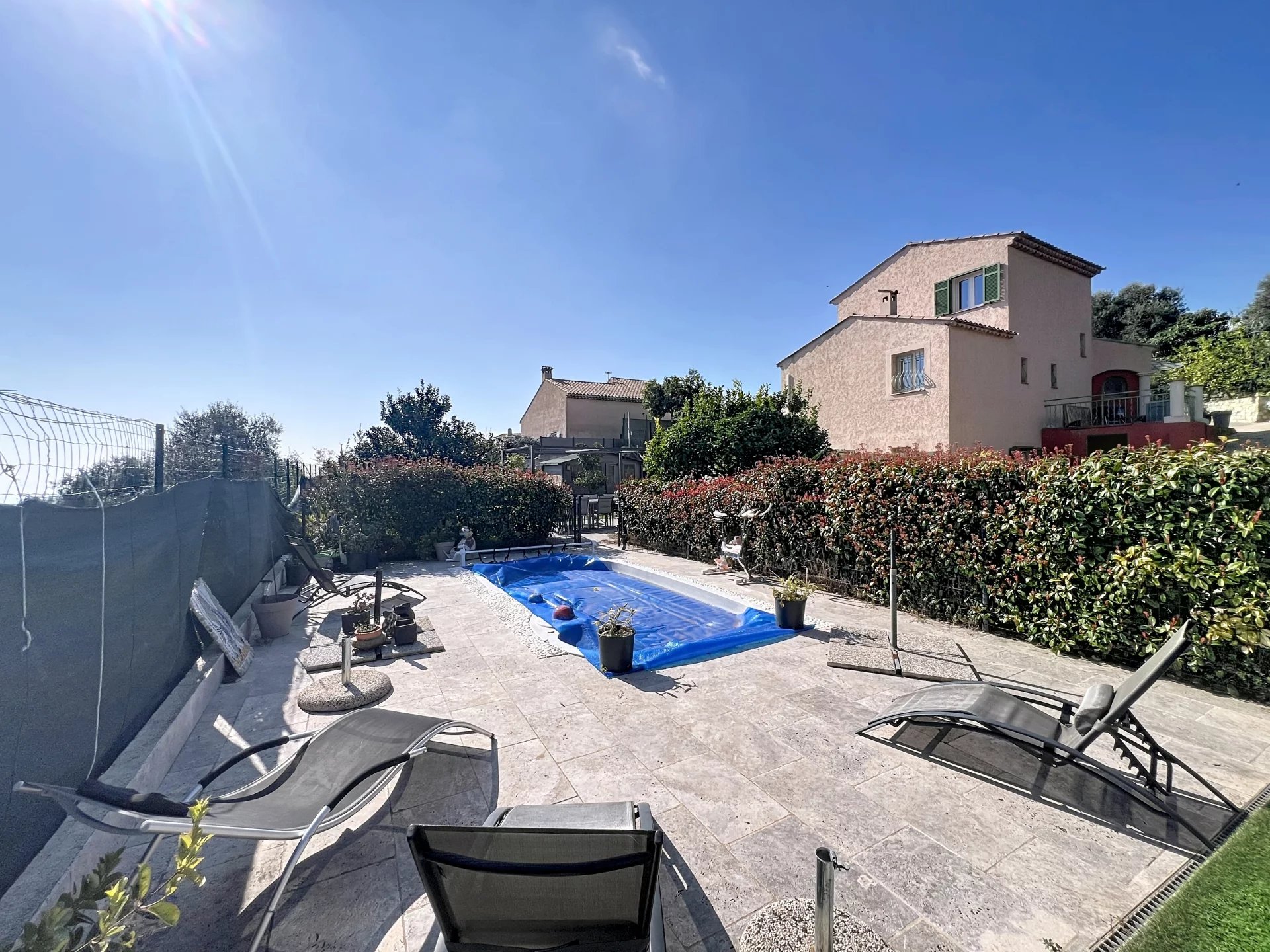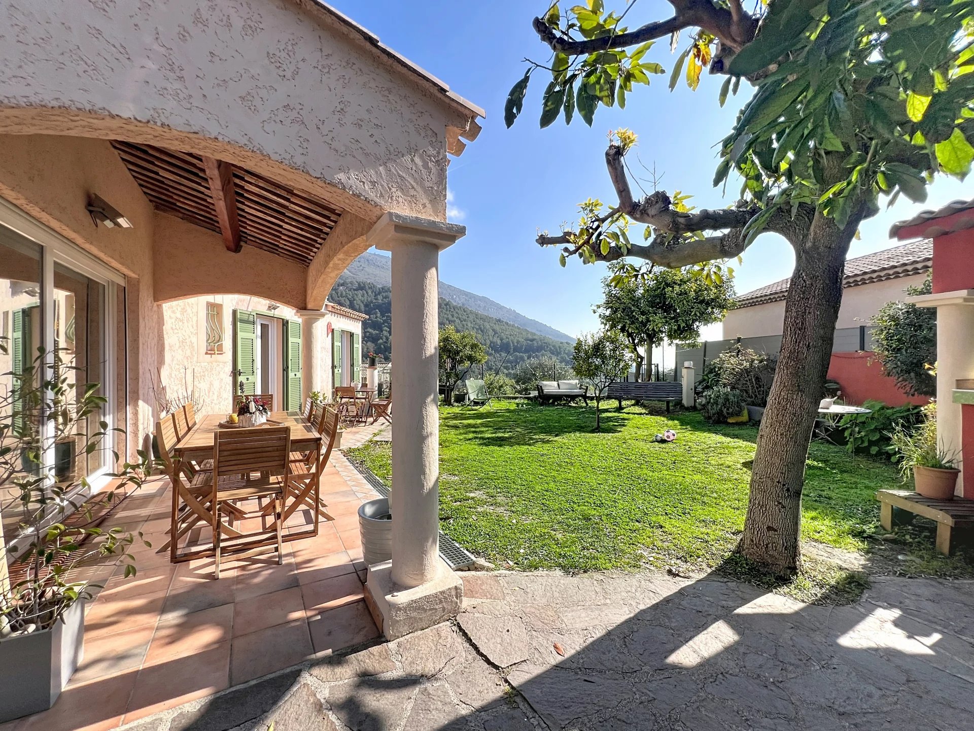 Direct access to a splendid Provencal-style detached house, 120m², sunny from morning to night, with unobstructed views of greenery and the sea: